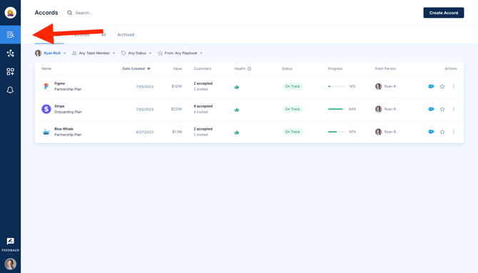 Think of an Accord as an Opportunity or Deal – but customer-facing. An Accord is meant to guide you, your customer, and any other stakeholder through your Sales/Onboarding process.