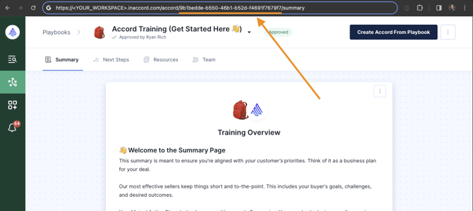 11. Configure the Action to take Record as the input value for the selected action and find the playbookId of the Playbook that you want to use. The playbookID can be found in the URL of Accord when you're viewing the Playbook.