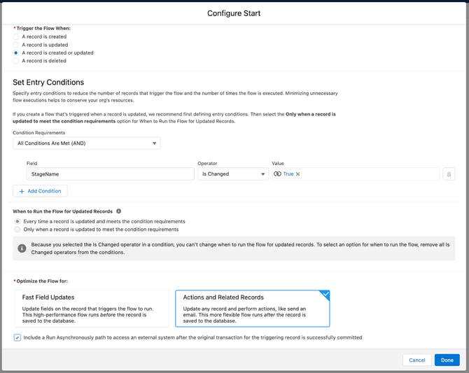 7. Configure any other desired conditions that you want this Flow to trigger.