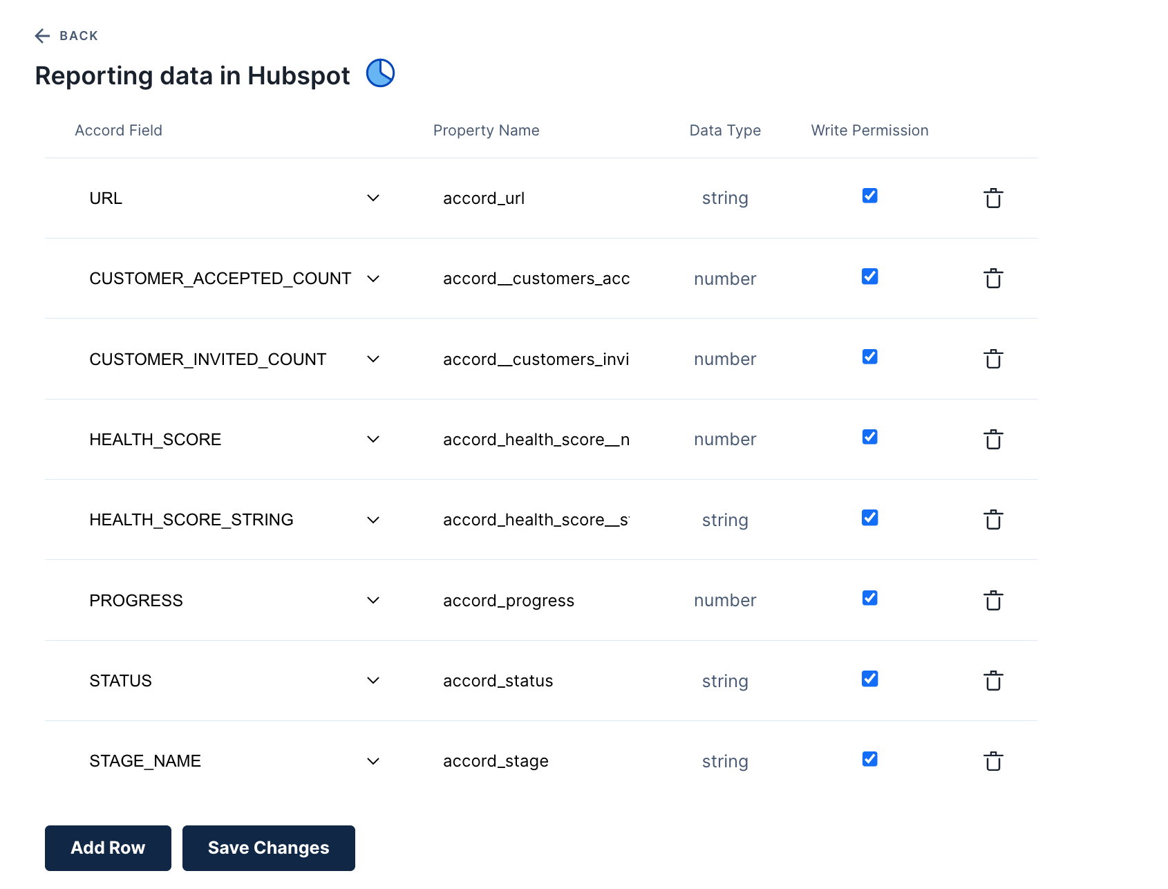 - Select "Add Row" and map each Accord field to the corresponding HubSpot property