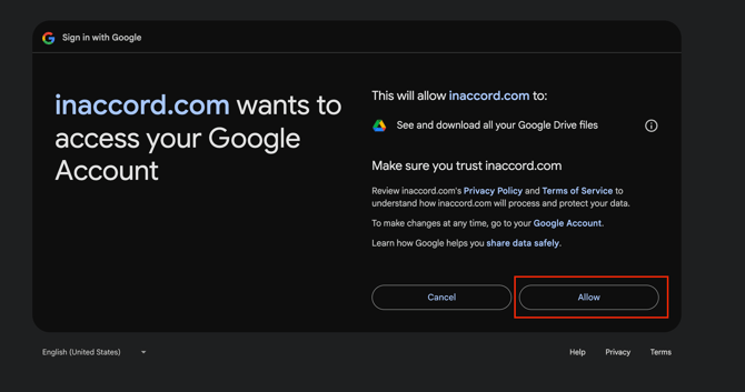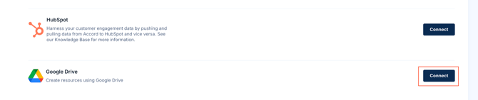 Connecting your Google Account to Accord will let you sync files and folders from Google Drive directly to Accord as Resources.