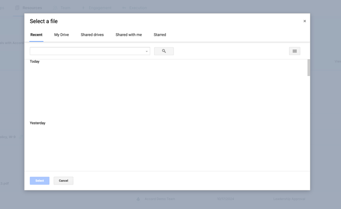 Once you find the file that you want to add to your Accord, Playbook, or Resource Library, click "Select" to add it as a Resource.