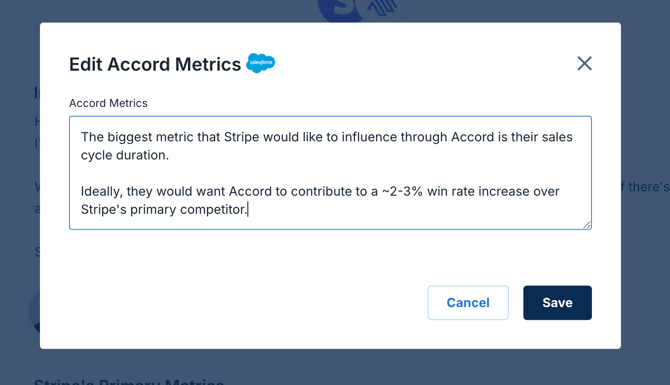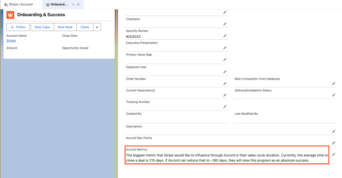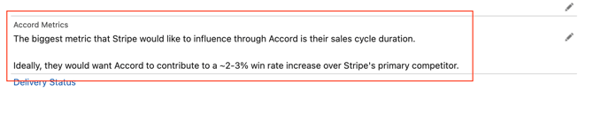 For example, here's what the value of the "Accord Metrics" field looks like in Salesforce: