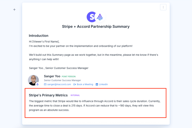 Sync field values from Salesforce into Playbooks and Accords, surfacing data that helps sellers tailor Summary pages and communications to each customer's specific needs.